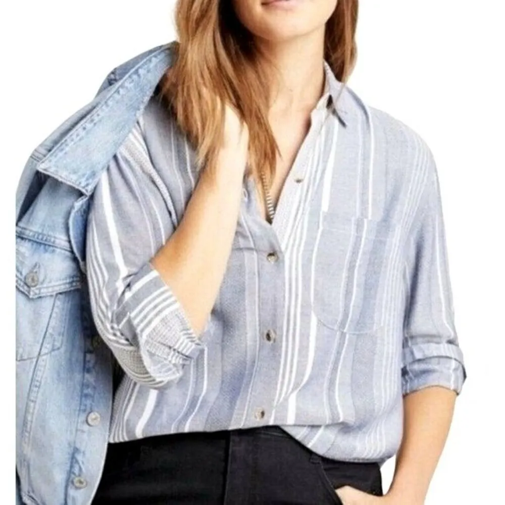 This Anthropologie Maeve Shirt is a must-have for every stylish woman. It's in a blue and white chat... Show more
