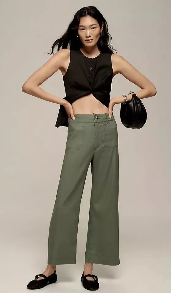 Anthropologie Maeve The Colette Linen Blend Crop Wide-a leg Pants Green Size 16W - $69 New With Tags - From Sam