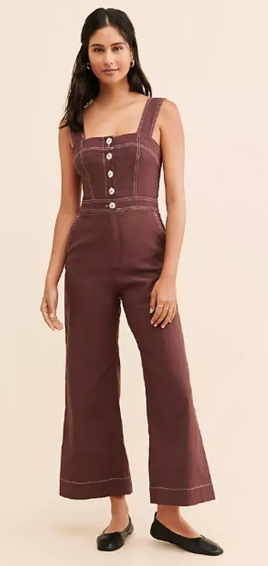 Anthropologie Maeve The Colette Portside Button-Front Jumpsuit Brown Size 6 Excellent Condition - no... Show more