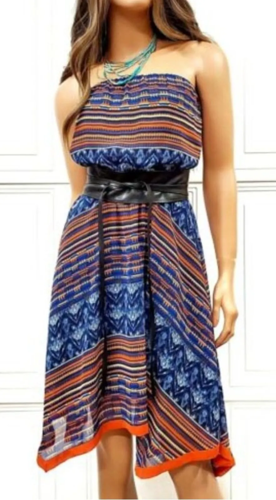 Anthropologie Maeve Urcos Handkerchief Geometric Print Strapless Dress A stunning piece that exudes... Show more