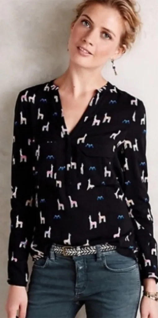 Anthropologie Maeve V-Neck Blouse Llama Alpaca Black Size 8 Long Sleeve - $31 - From Kathryn