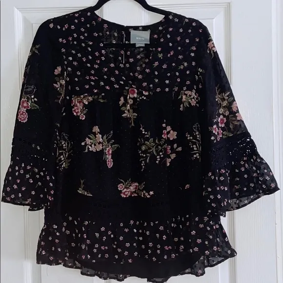 Maeve Steffy bell sleeve blouse from Anthropologie with floral design. Pre owned but good condition.... Show more