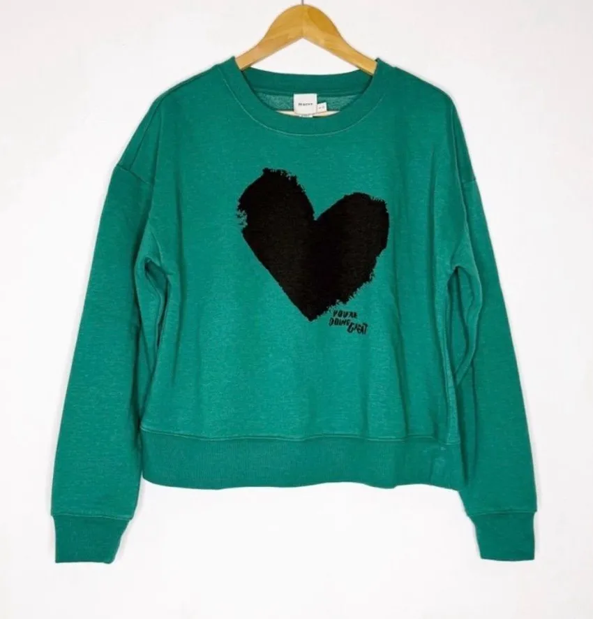 Anthropologie Maeve x Chiara Perano Heart Sweatshirt “You’re Doing Great” Green - $48 New With Tags - From Sarah