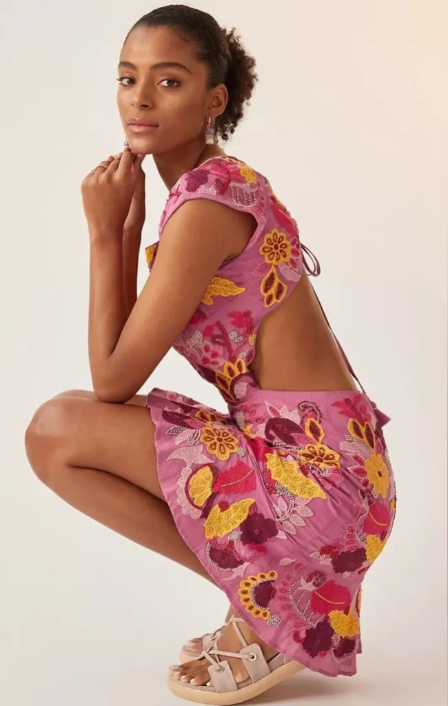 Elegant magenta dress with intricate embroidery. Perfect for special occasions. The name "Maeve" re... Show more