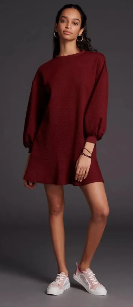 Anthropologie Mare Mare NWT Odila Tunic Dress Size Small Red, Long Sleeve Bust 21" across Length... Show more