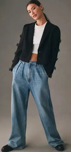Anthropologie Mare Mare Tulle Bow-sleeve Blazer In Black Collared slight cropped boxy blazer. Tull... Show more