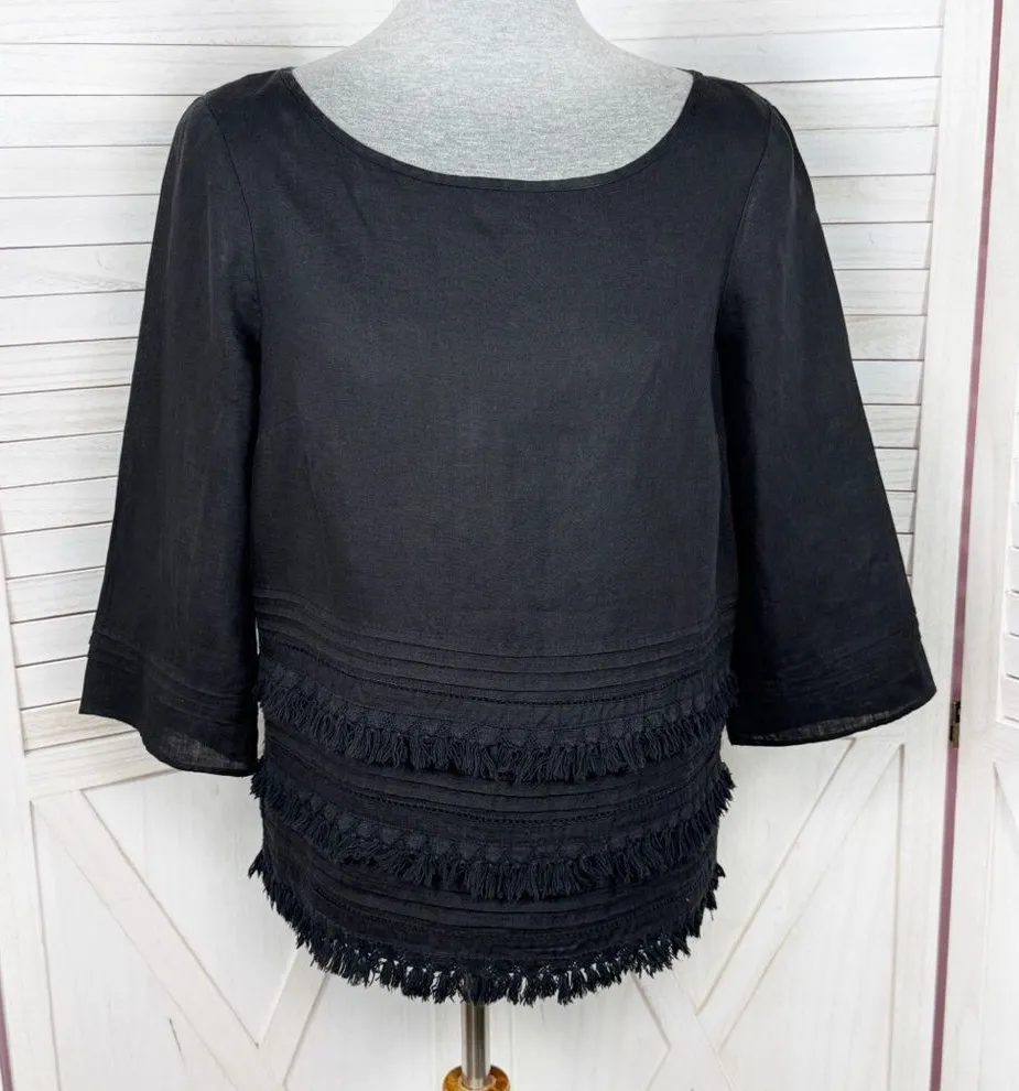 Anthropologie Meadow Rue Olathe Tiered Fringe Hem Linen Boxy Shirt Black Size Small Onyx black... Show more