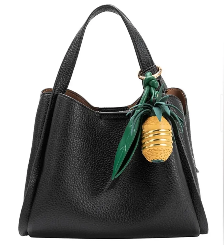 . Features vibrant green leaves and a gold body. Designed with a scallop finish and gold hardware, t... Show more