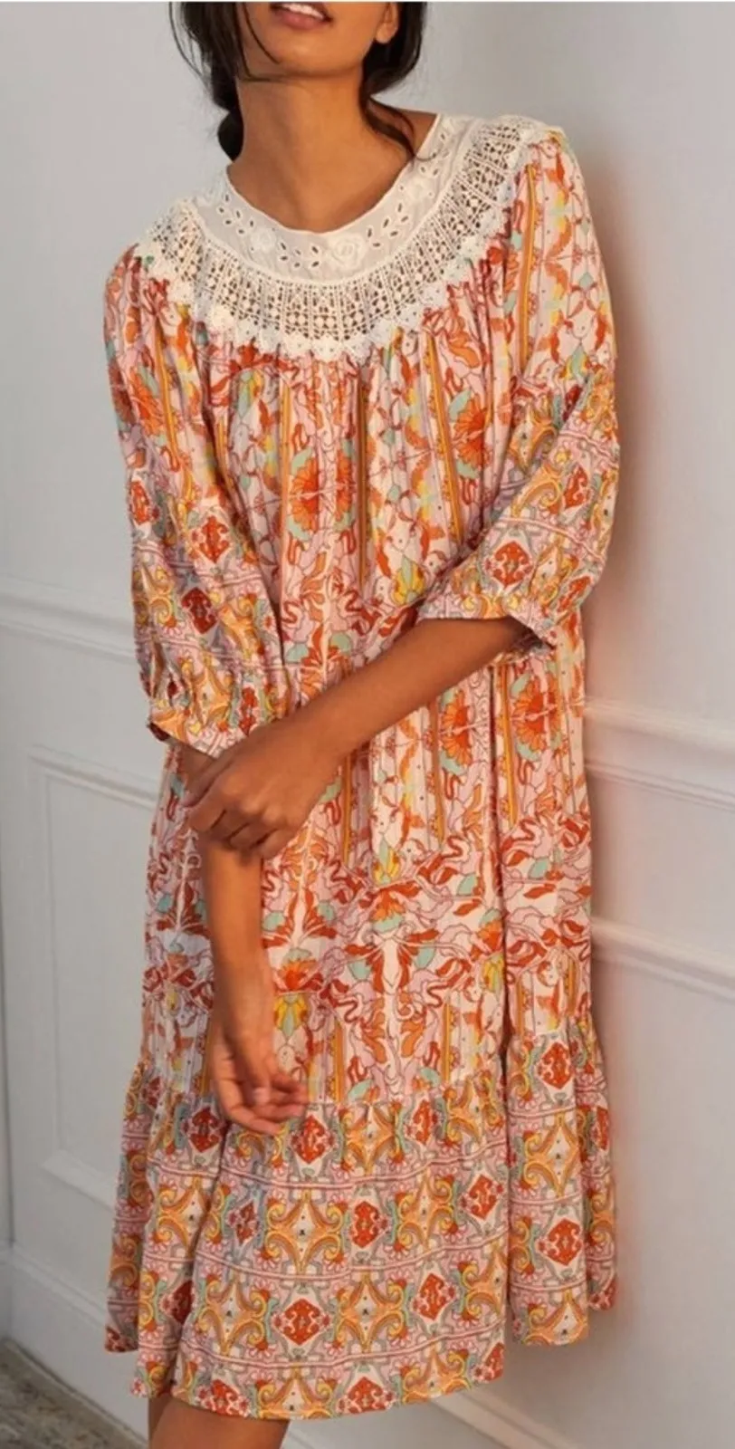 Anthropologie floral Florence lace lounging dress size XS