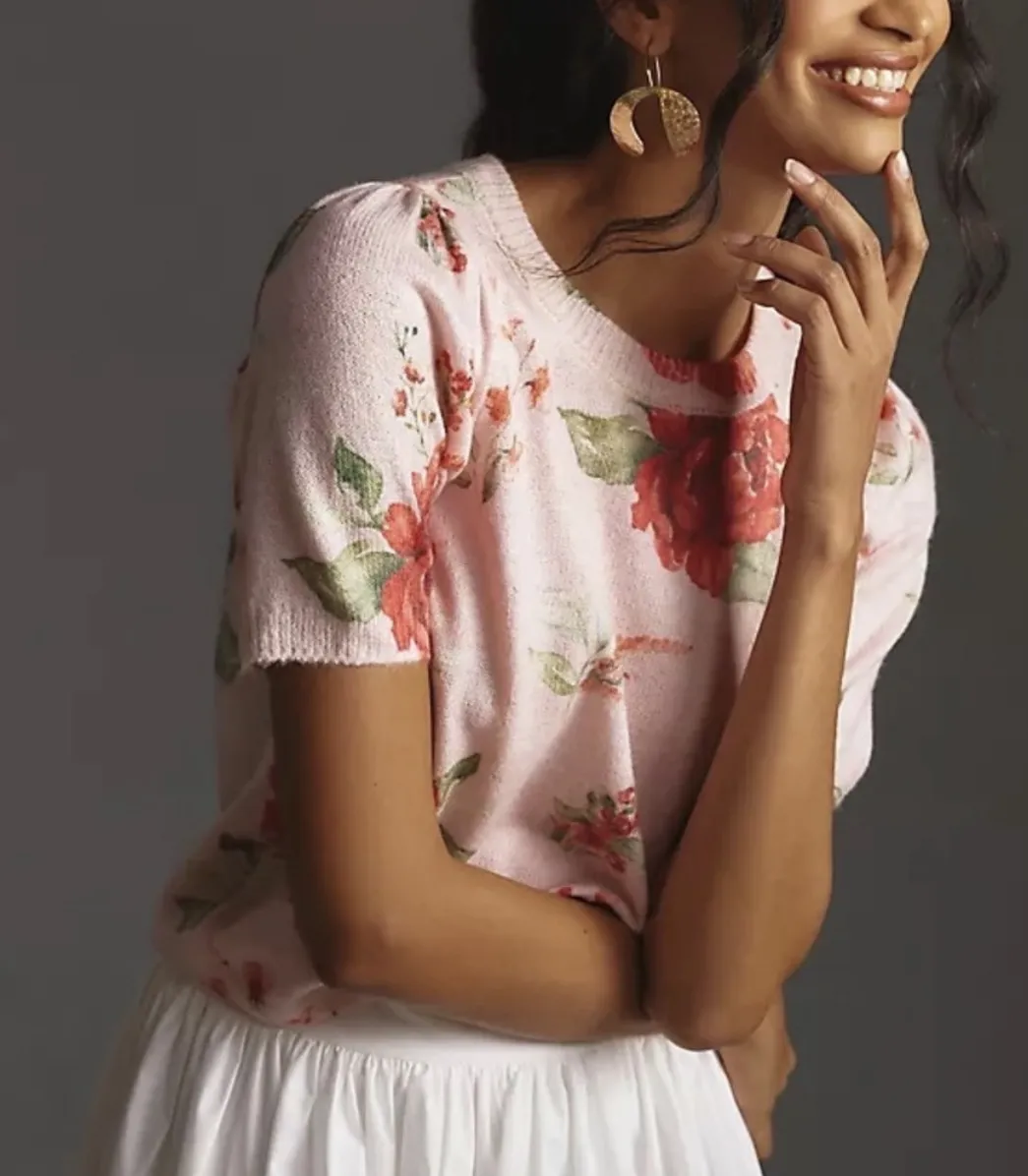 Anthropologie Mollie Floral Puff Sleeve Knit Top Soft, feminine, and effortlessly pretty. This ANTH... Show more