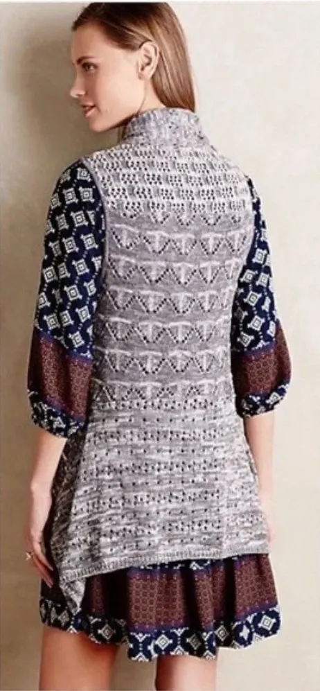 . This vest is beautiful and perfect for all seasons. Cotton blend. Machine wash. Excellent, pre-owned condition and from a non-smoking home. Measurements: PTP: 19" length: 30"