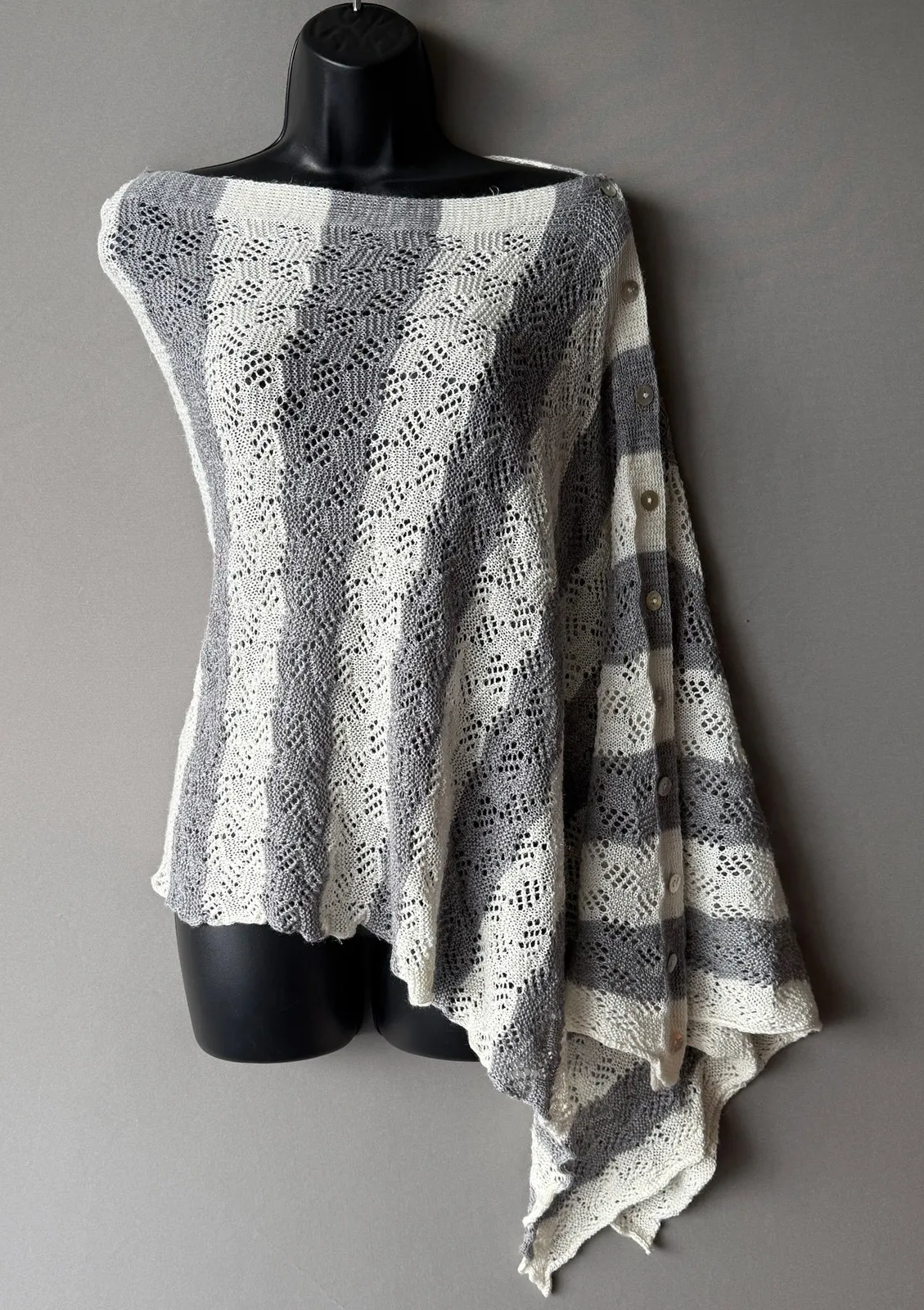 Anthropologie Moth sz One Size gray white striped poncho linen knit top NWOT Brand new with no tag.... Show more