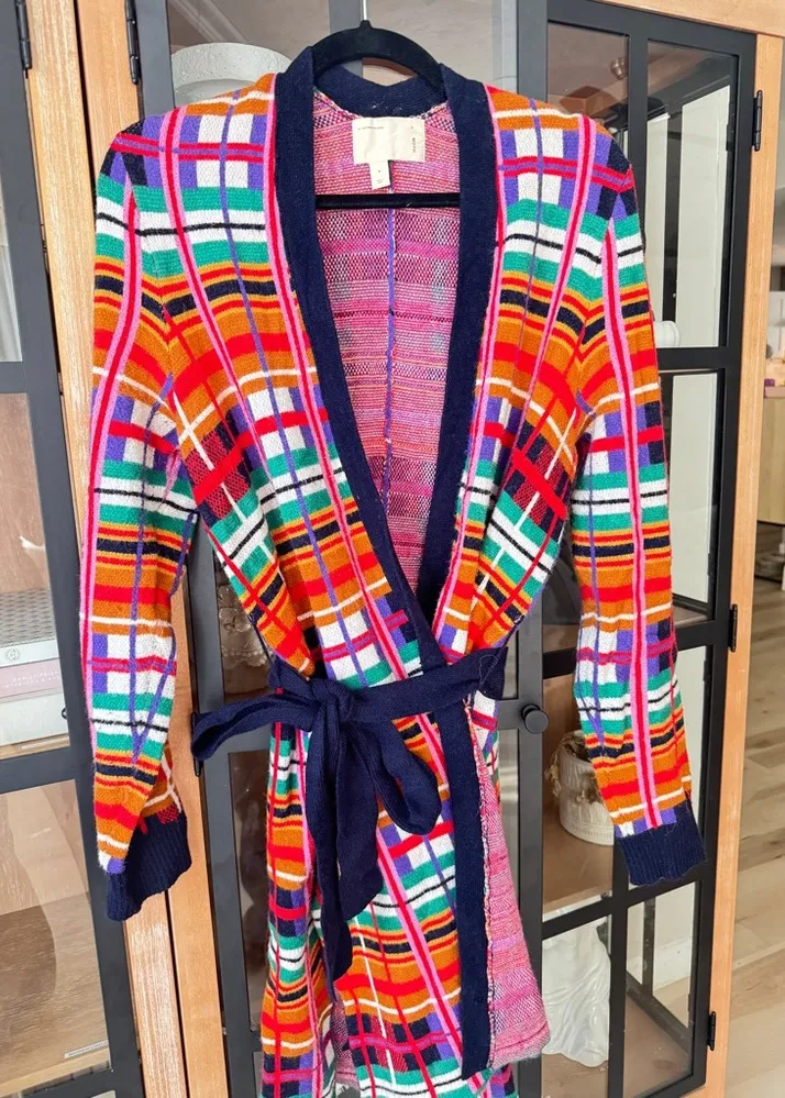Anthropologie Moth Williston Plaid cardigan colorful knit tie waist coat sweater Red Size M - $60 - From Filo