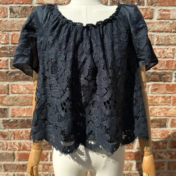 This elegant black lace crop top by Moulinette Soeurs is perfect for any occasion. Its intricate lac... Show more