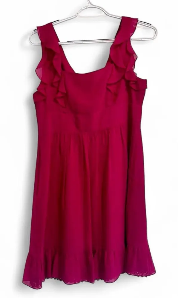 Anthropologie Moulinette Soeurs magenta / dark pink ruffle mini dress size 6 100% silk. Ruffle deta... Show more
