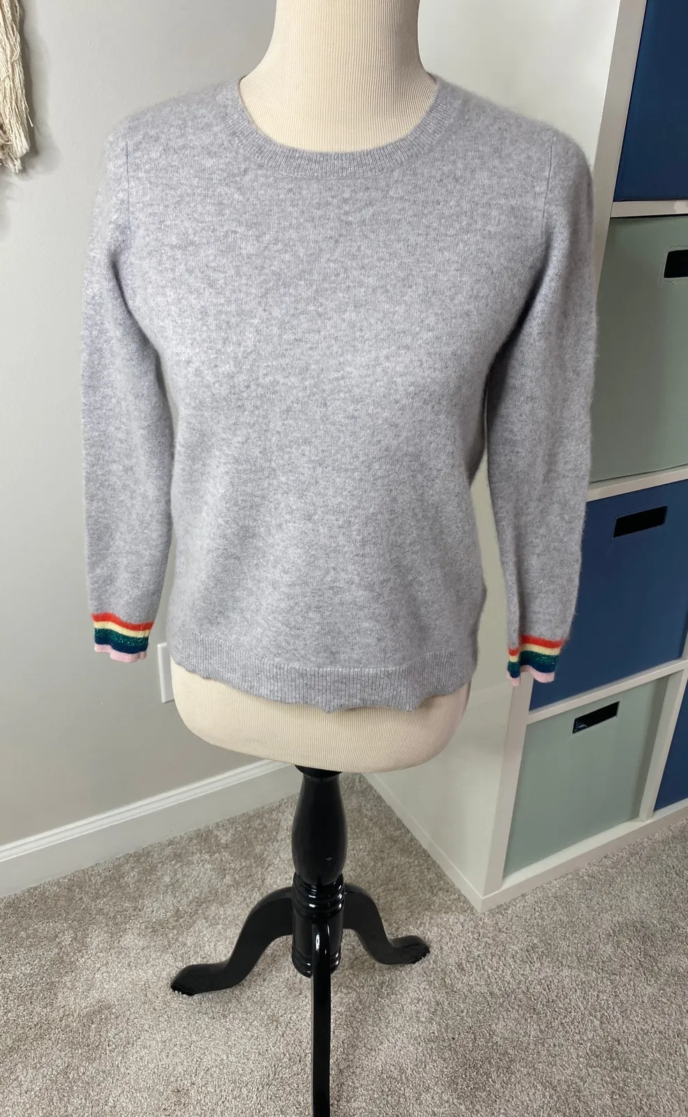 Anthropologie Needle Gray Cashmere Rainbow Varsity Striped Crew Neck Sweater Size: Small Condition:... Show more