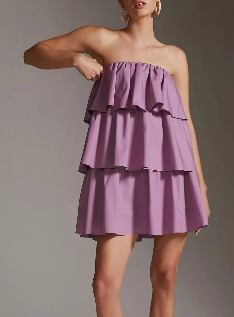 Size medium NEW WITH TAGS Style Notes Tiered mini dress in strapless, A-line silhouette Pullover... Show more