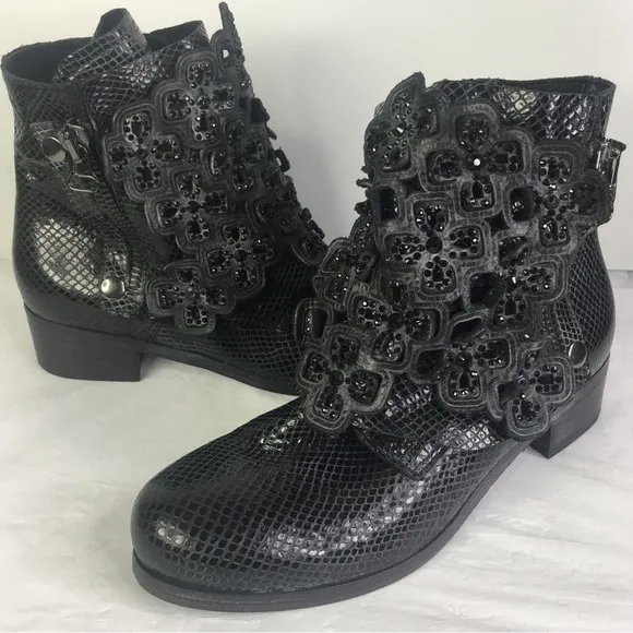 New Sheridan Mia Black Leather Floral Applique Ankle Boots Women's 37/7 textured Snake pattern l... Show more