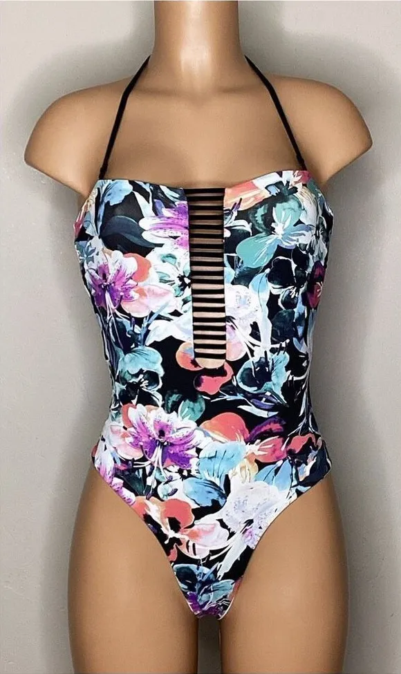 New. WET Pop Art Illusions Brie One Piece Swimsuit L Floral Cutout Halter Reversible. Floral waterco... Show more