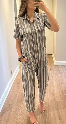DRA Los Angeles Sold at Anthropologie MSRP $172 Chambray Stripe Jumpsuit Baggy style, button up clos... Show more