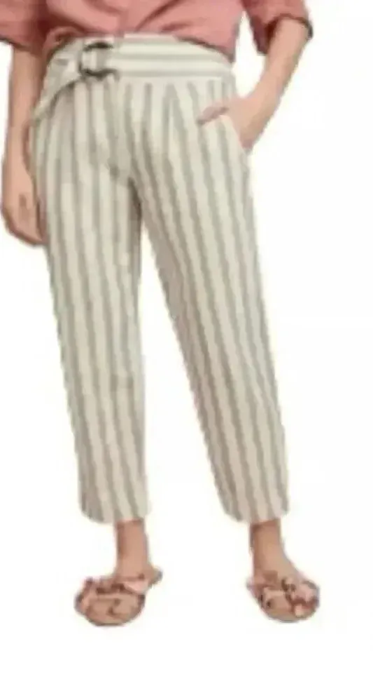 Anthropologie Oasis Striped Linen Blend Tailored Ankle Pants White/Taupe SZ 4 #2011 Excellent pre o... Show more