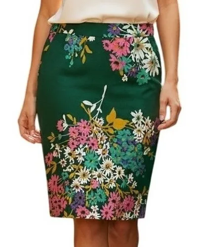Enchanting blooms adorn this Odille skirt, a vibrant statement piece for the modern wardrobe. Emerald green serves as a lush backdrop for a delightful array of pink, purple, and white floral designs, creating a garden-fresh aesthetic. Flattering pencil silhouette and side pockets make it a functional and stylish choice. The quality construction ensures durability and a comfortable fit, adding a touch of elegance to any ensemble. Condition: Excellent Pre-Owned Type: Skirt Style: Straight & Pencil Skirt Length: Knee Length Color: Green Department: Women Pattern: Floral Material: 97% Cotton 3% Spandex - Lining 100% Cotton Machine Wash Features: Pockets Character: Floral Closure: Zip/Eyehook Size 28 - Small Waist 28" - Hips 36" - Length 23" All items are measured lying flat Keywords: Odille skirt, floral skirt, pencil skirt, green skirt, pink floral skirt, career skirt, business casual skirt, cocktail skirt, party skirt, women's skirt, floral print, spring fashion, summer fashion, skirt with pockets