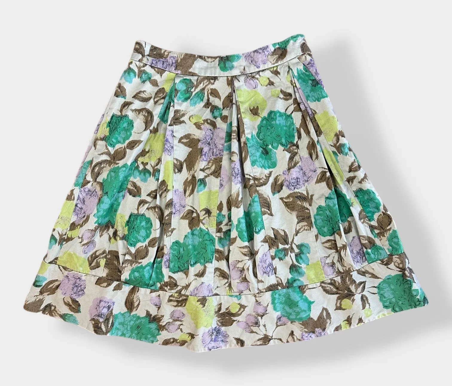 -Anthropologie Odille green floral pleated skirt with lace trimmed lining -Size 6 -Shell 97% Cotton,... Show more