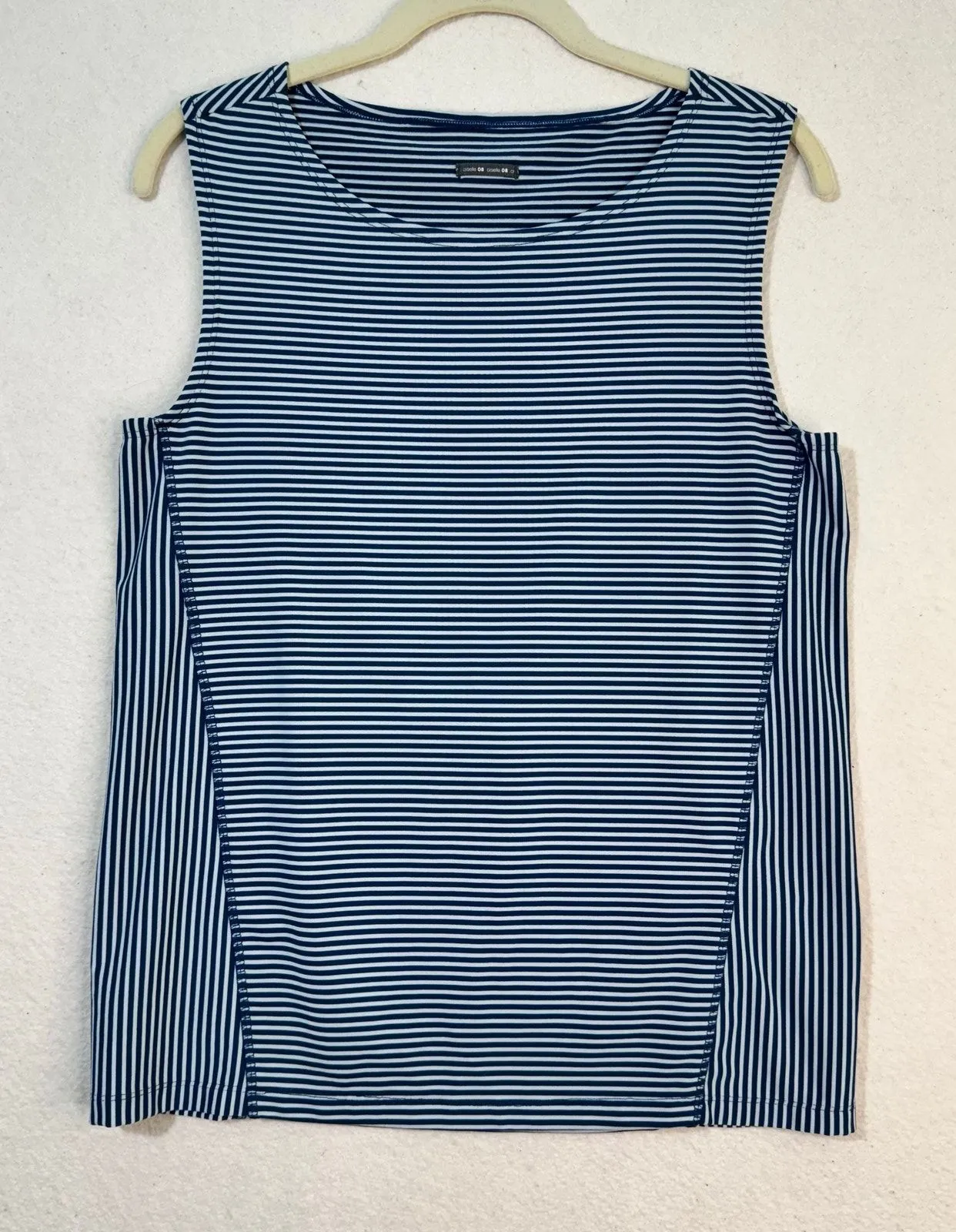 Get ready to hit the gym or the trails in this stylish and comfortable Anthropologie Oiselle Dri-Fit athletic tank top! Features: - Brand: Anthropologie Oiselle - Color: Blue and white striped - Material: Dri-Fit, breathable fabric - Size: 8 - Measurements: pit to pit 18", length 25" - Design: Flattering fit, perfect for workouts or casual wear This tank top is in excellent condition and ready for its next adventure. It's perfect for running, yoga, or just everyday wear. Grab it now and add a pop of color to your activewear collection!
