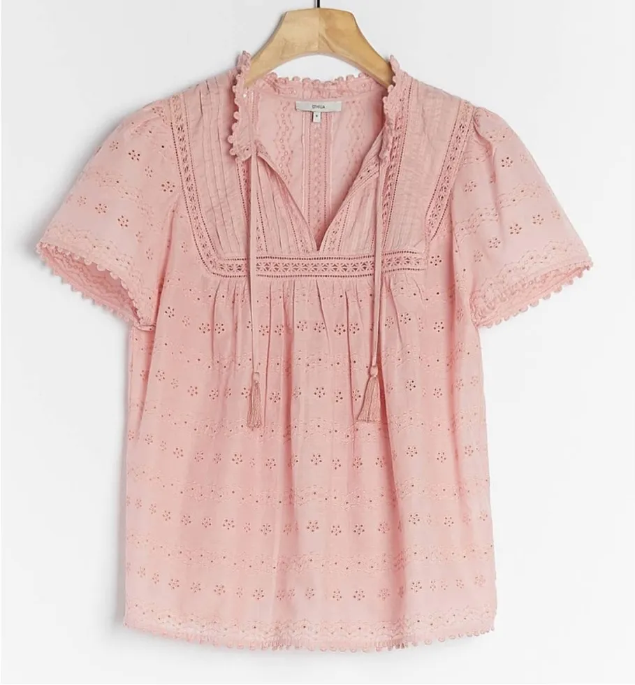 Anthropologie Othilia Enrika Lace Bohemian Blouse Pink Size 6 - $30 - From Leslie