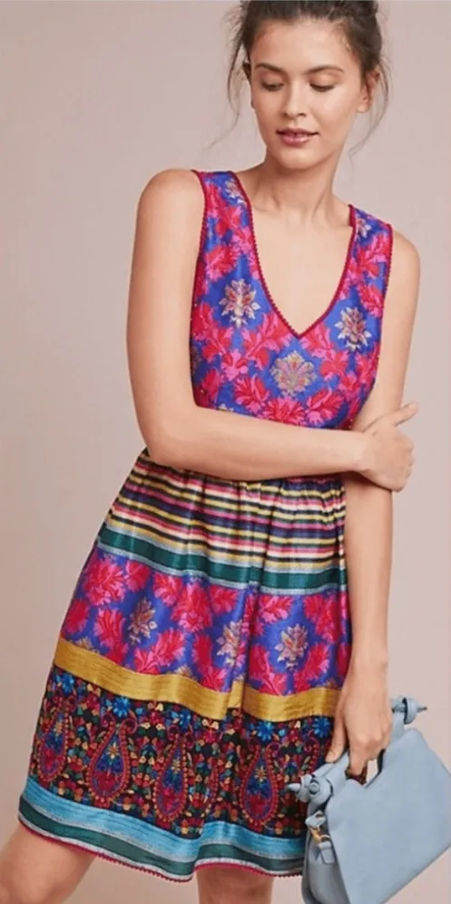 Gorgeous fit and flare dress from Anthropologie in sz 2. Vivid colors, embroidery, beads. Zips in th... Show more