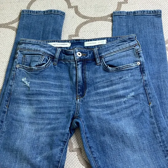 Stylish blue slim boyfriend jeans. Perfect for casual wear.