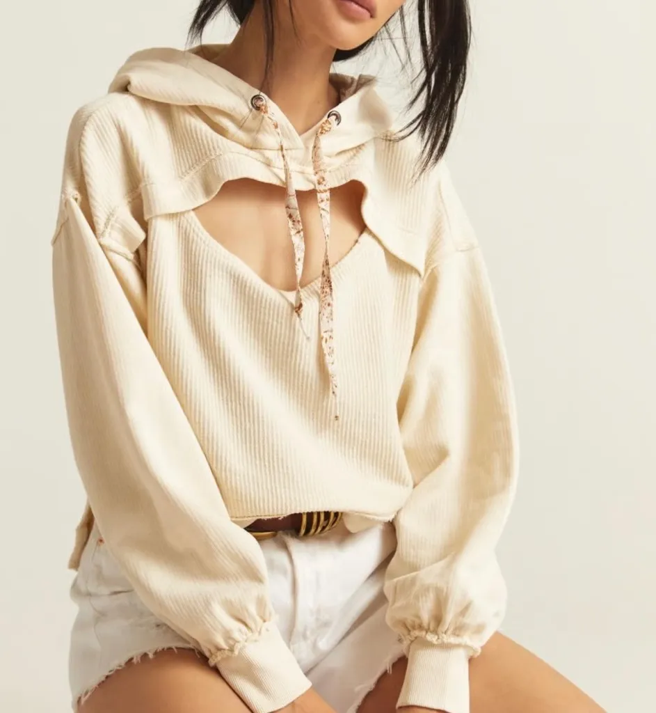 Anthropologie Pilcro Cutout Hoodie Size XS Oversized Ribbed Luna Briggs - $34 - From susie