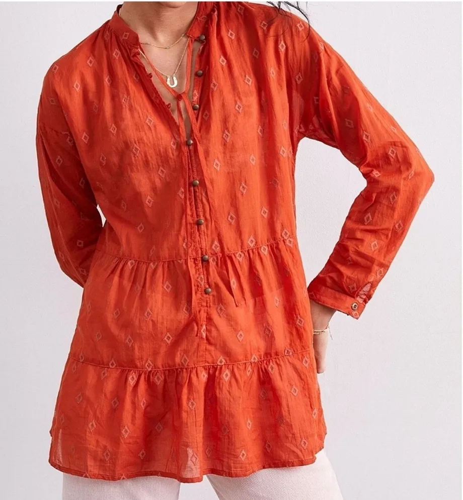 Anthropologie Pilcro Embroidered 100% Cotton Tiered Tunic Blouse Size small