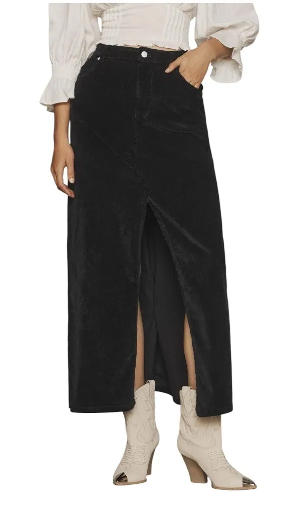 Anthropologie Pilcro Madi Front Slit Corduroy Maxi Skirt in Black. Size 6. 75% cotton, 23% modal, 2% elastane Approx measurements when flat Waist 15" Length 39" Type: Skirt Style: Maxi Skirt Length: Long Color: Black Department: Women Pattern: Solid Material: Corduroy, Cotton Blend, Modal, Spandex Accents: Button Fabric Type: Corduroy Features: Slit, Pockets Character: Casual Chic, Urban, Contemporary, cowgirl Closure: Button Rise: High Occasion: Casual, Travel Keywords: Pilcro, Corduroy Skirt, Maxi Skirt, Black Skirt, Womens Skirt, Size 6, High Waist, Slit Skirt, Casual Skirt, Contemporary, Fashion, Urban, Comfortable, Everyday Wear
