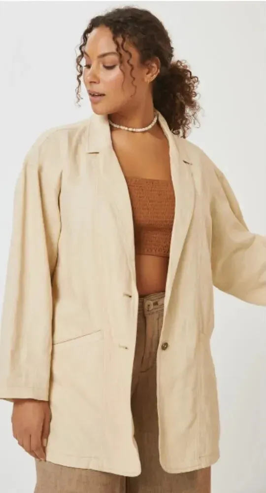 Anthropologie Pilcro Summer Blazer in Taupe / Tan / Khaki * Front welt pockets * Button front... Show more