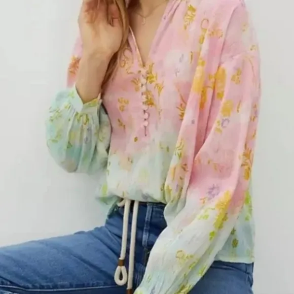 Anthropologie Pilcro Tavi Tie Dye Floral Gauze Blouse Size Small The Tavi offers a refreshingly mod... Show more