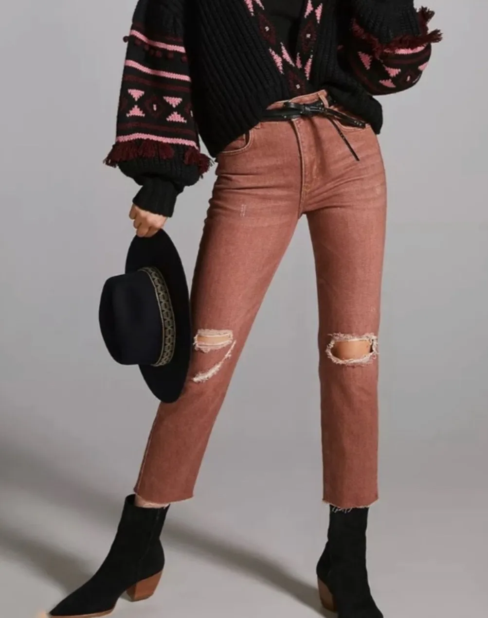 Pilcro jeans, size 25. Brand new with tags. Cotton and polyester blend. Straight leg style with distressing and a raw hem. Total length: 39" Waist lying flat: 13" Inseam: 28" Rise: 11"