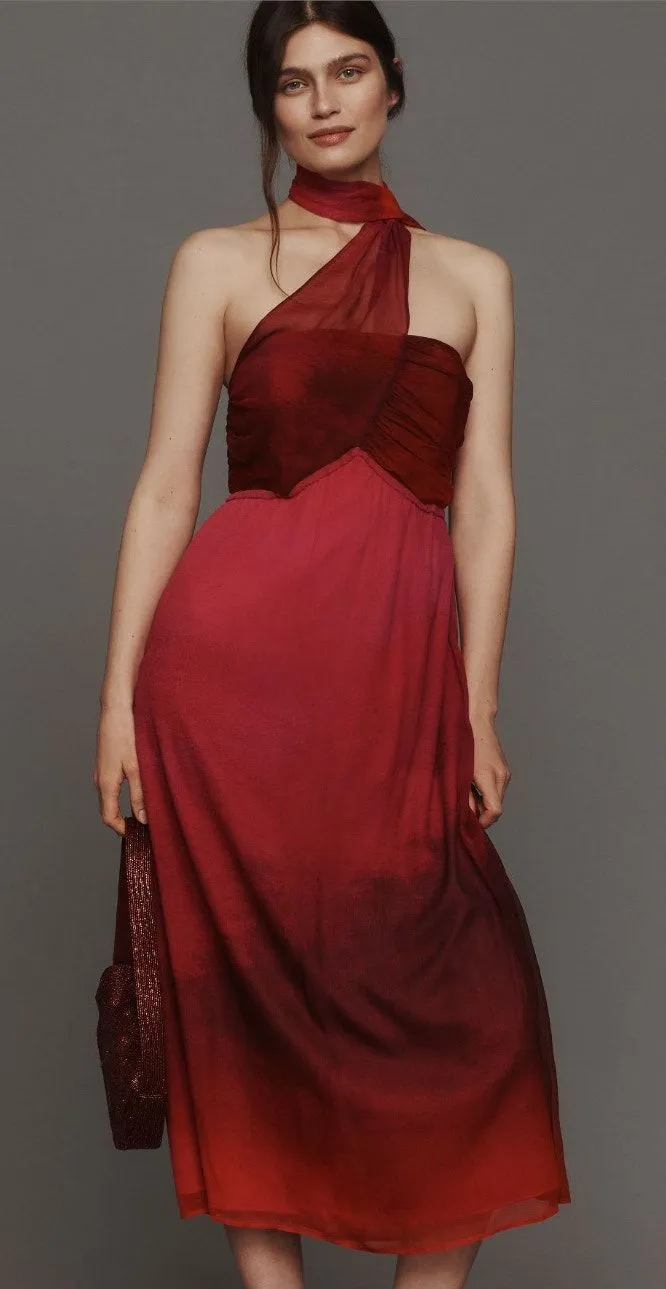 Stunning Anthropologie | Plenty by Tracy Reese pink/rose ombré halter midi dress, featuring a scarf-... Show more