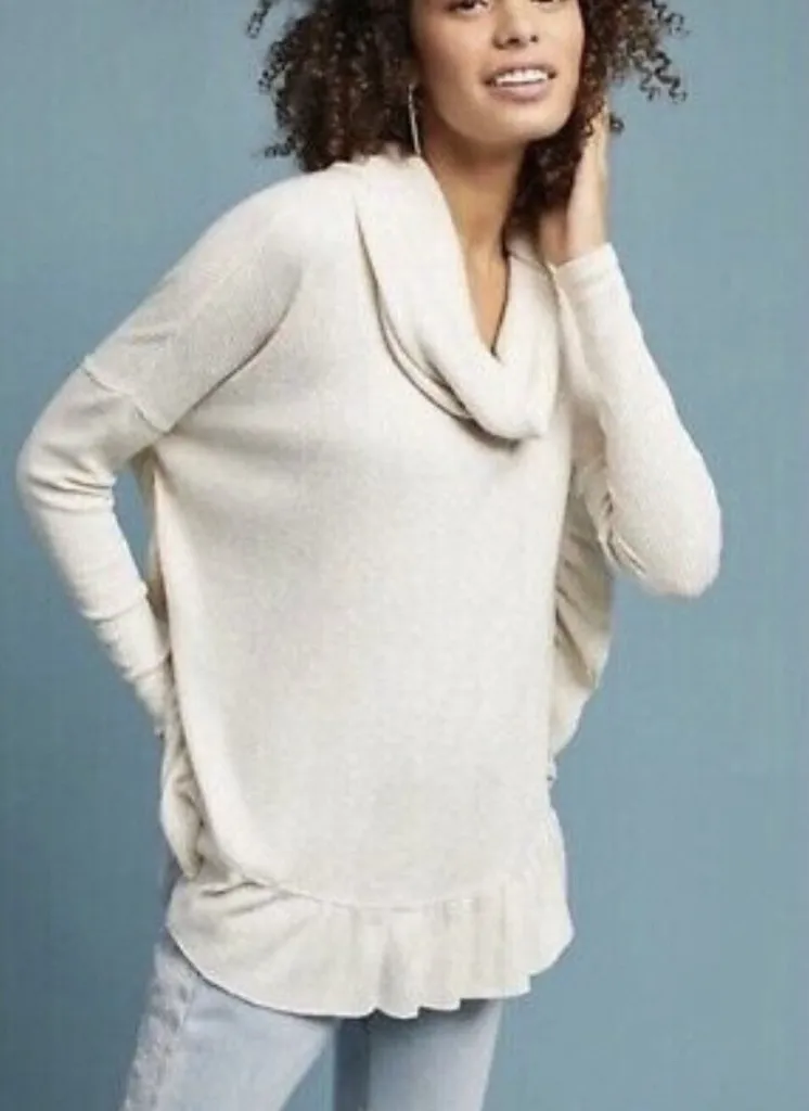 Anthropologie Postmark cowl neck sweater with ruffle hem cream‎ gold S/XS NWT - $18 New With Tags - From Metsky