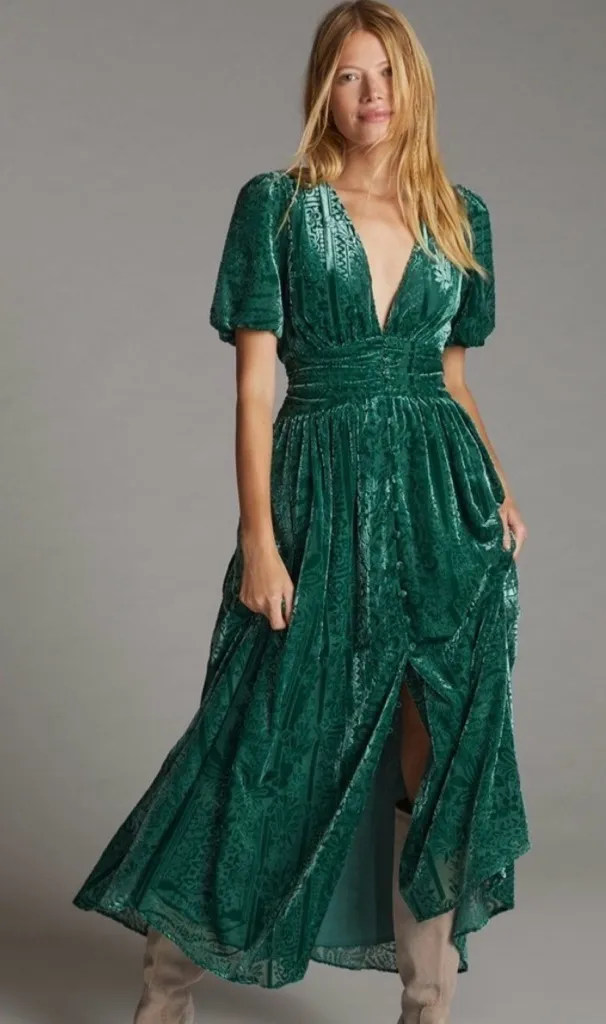 Step out in style with this elegant green velvet dress. Perfect for any occasion, this dress offers... Show more