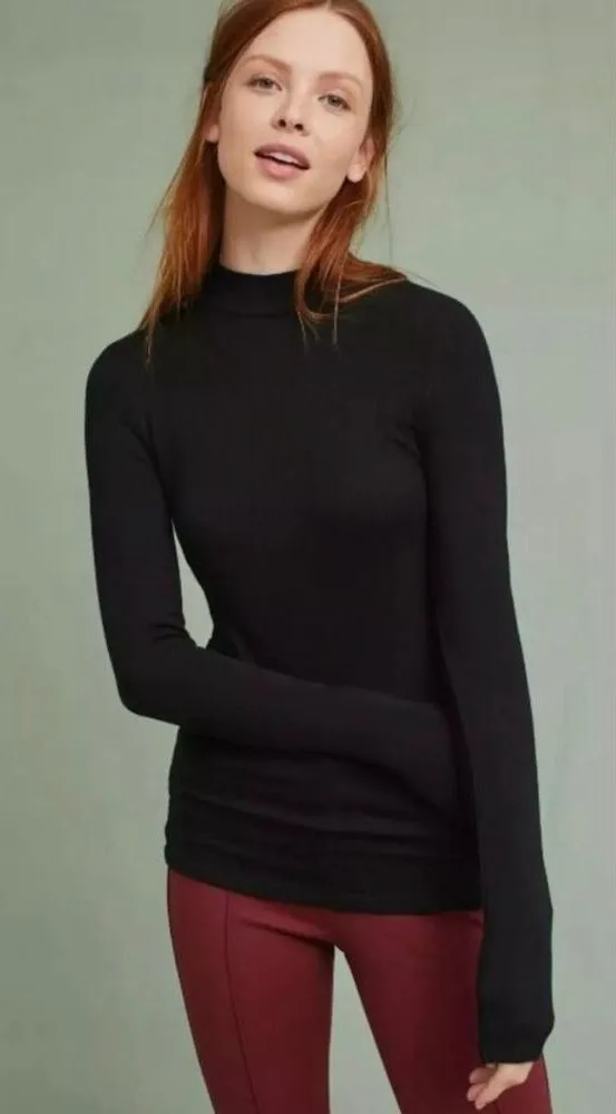 ✨ANTHROPOLOGIE Pure + Good Mock Neck Layering Tee Size: Large Color: Black Long Sleeve PURE GOOD... Show more