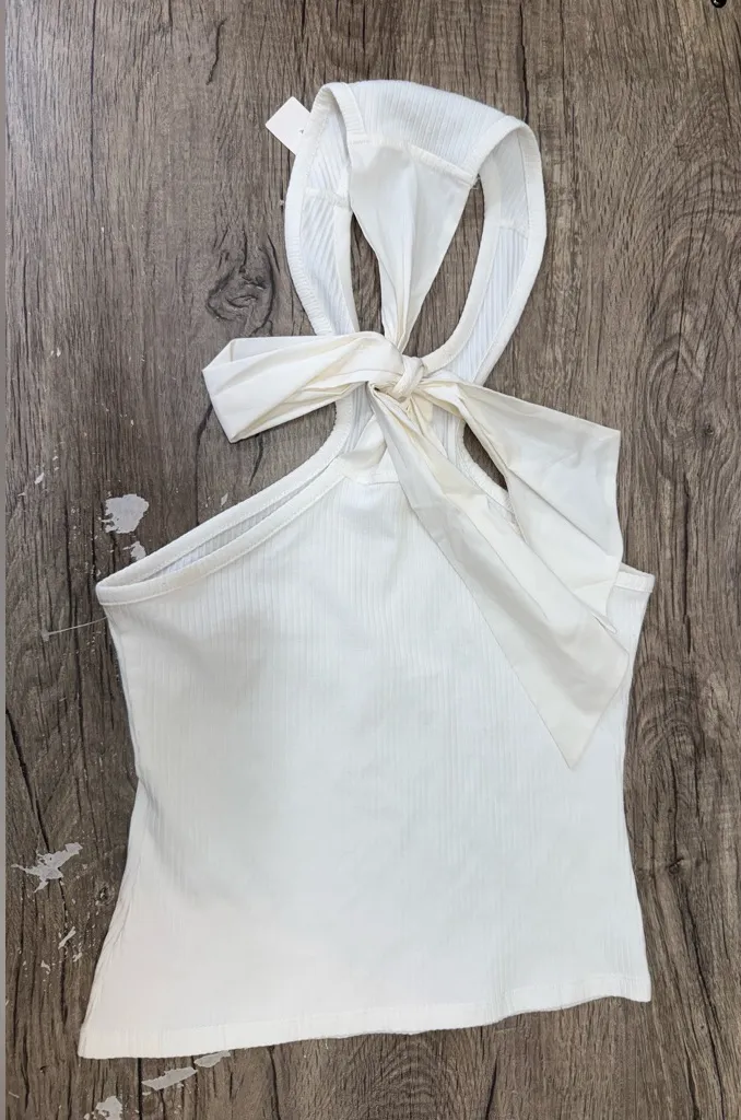 Anthropologie Racerback Bow-Tie Tank Sunday in Brooklyn White Cotton Size‎ m Size M - $18 New With Tags - From Melissa