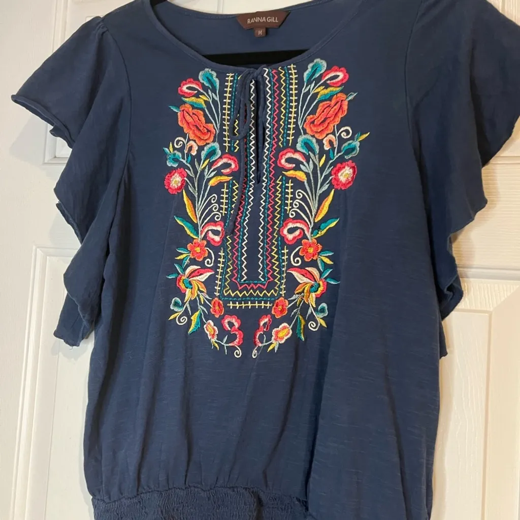 Anthropologie Ranna Gill Cotton Enesta Embroidered Top Boho Floral Blue Size M - $28 - From Ryan