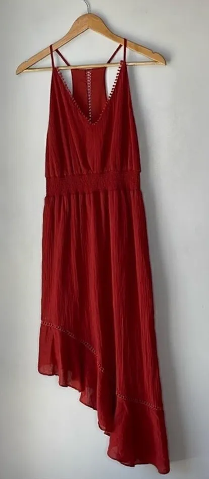 Anthropologie Red Carter Gauzy Burgundy Red High Low Midi Dress Anthropologie Red Carter Gauzy Bu... Show more