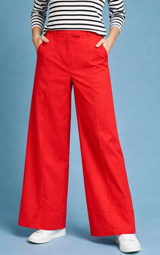 Anthropologie red wide leg pants in 100% cotton with a high-rise fit. Tailored trouser style, bold c... Show more