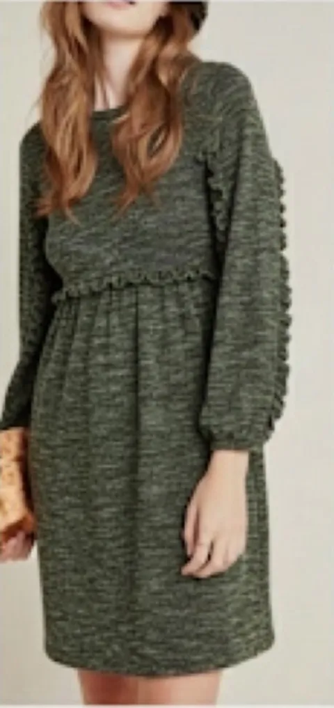 Anthropologie RO & DE Green Long Sleeve Stella Ruffled Mini Dress Size 2X NWT - $65 New With Tags - From Leslie
