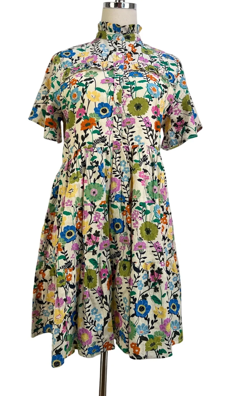Anthropologie Ro's Garden Vibeka Ruffled Mini Shirt Dress Floral White Size XS - $175 - From Excess