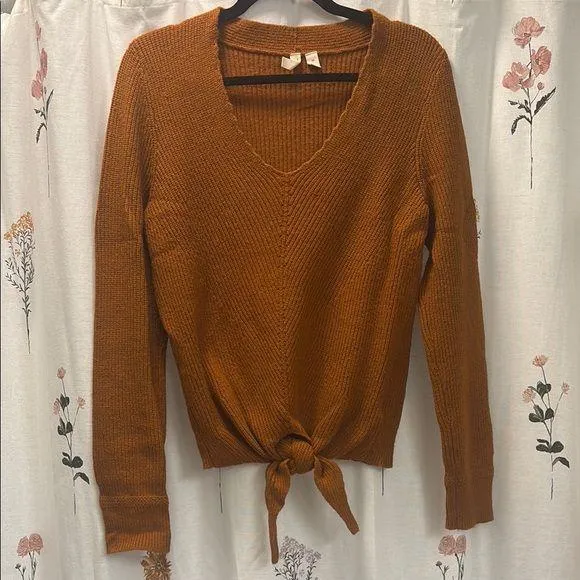 Stay cozy and stylish with this rust V-neck sweater. Featuring a chic tie-front design, it's perfect... Show more