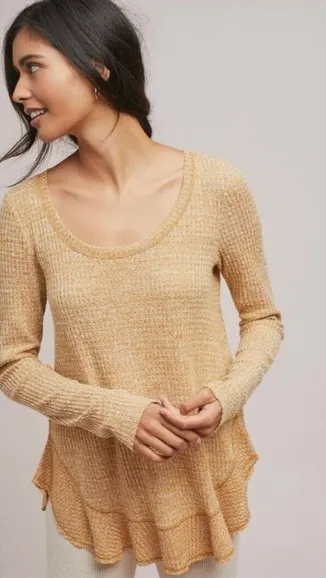 Anthropologie Saturday Sunday Wendy Waffle Top Womens Large Mustard Ruffle Back. In good preowned co... Show more