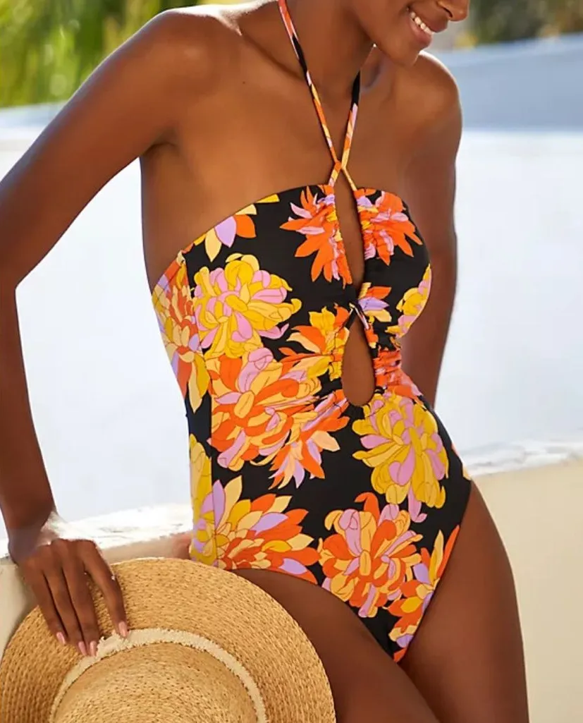 — Unworn, hygienic liner still attached Black with lilac purple orange yellow floral print US 4 or... Show more